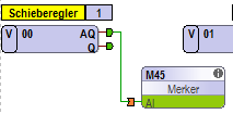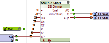 Beispiel: Regler 1 steuert über Merker M45 den Dimmer Saal 1-2 Spots